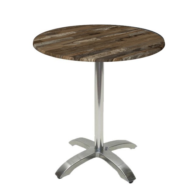 Mesa MILAN, aluminio, 4 radios, base de 72 cms y tapa 60 cms. Color a elegir, Tableros de 60 cms: WERZALIT-WOODART, MARACAIBO 4614