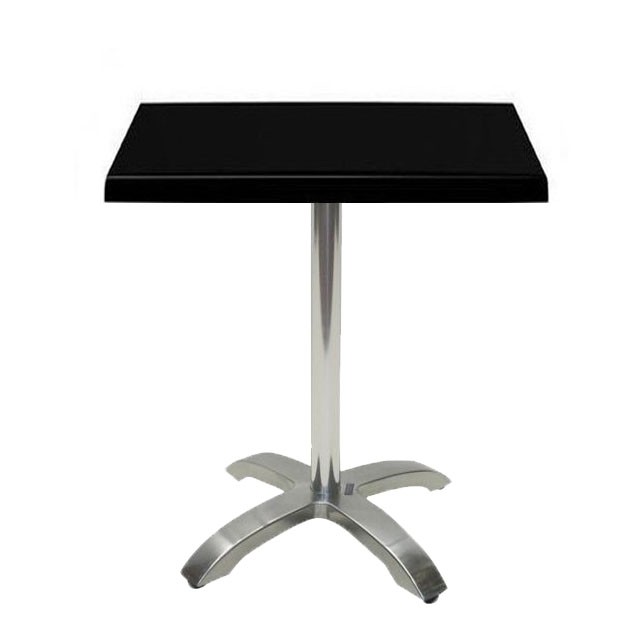Mesa MILAN, aluminio, 4 radios, base de 72 cms y tapa 60 x 60 cms. Color a elegir, Tableros de 60×60 cms: WERZALIT-UNIART, NEGRO 3190