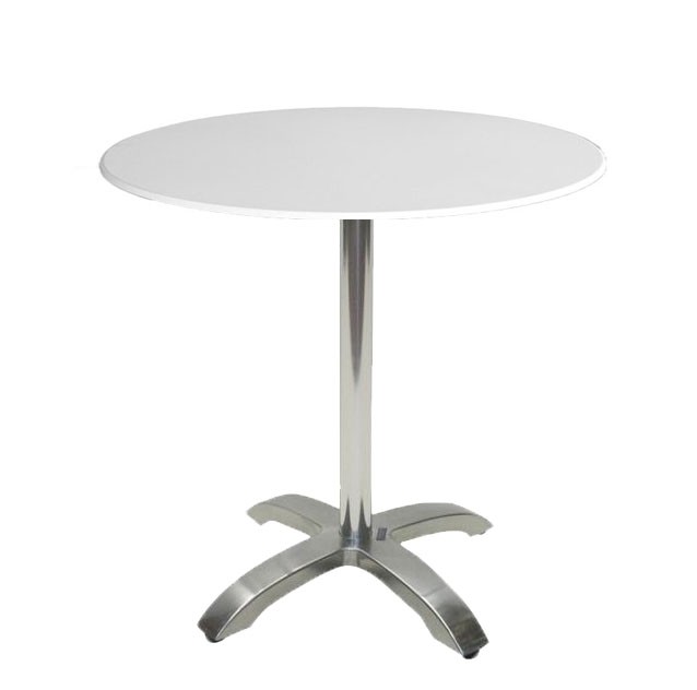 Mesa MILAN, aluminio, 4 radios, base de 72 cms y tapa 70 cms. Color a elegir, Tableros de 70 cms: WERZALIT-UNIART, BLANCO 3101